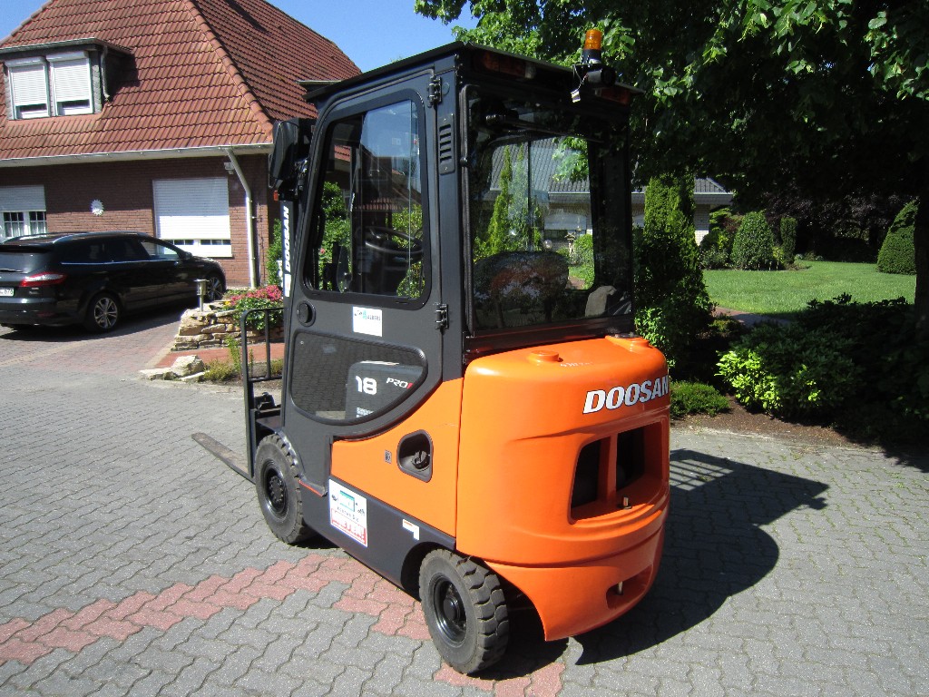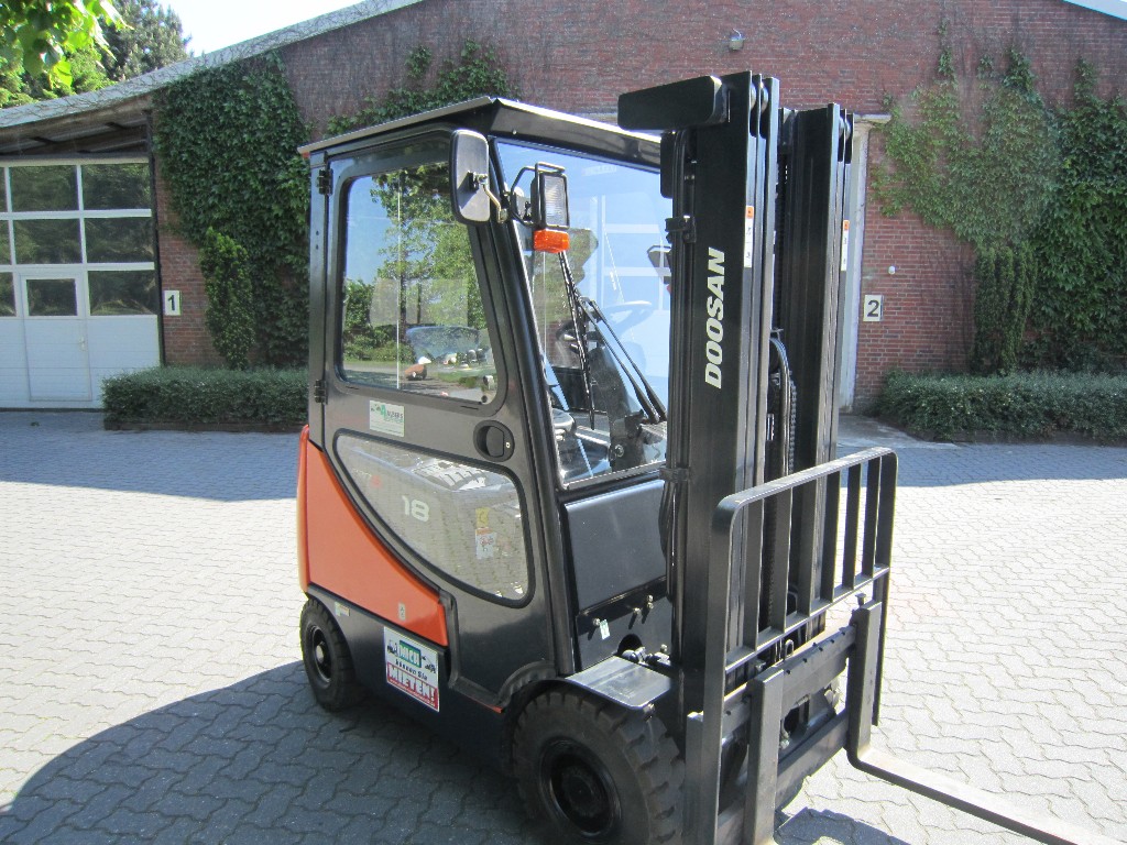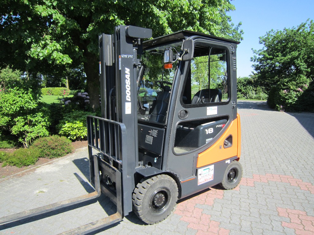 Dieselstapler DoosanD18 mit einer Tragkraft von1,8 Tonnen. SE- oder nicht-kreidende SE-Bereifung optional erhältlich.
