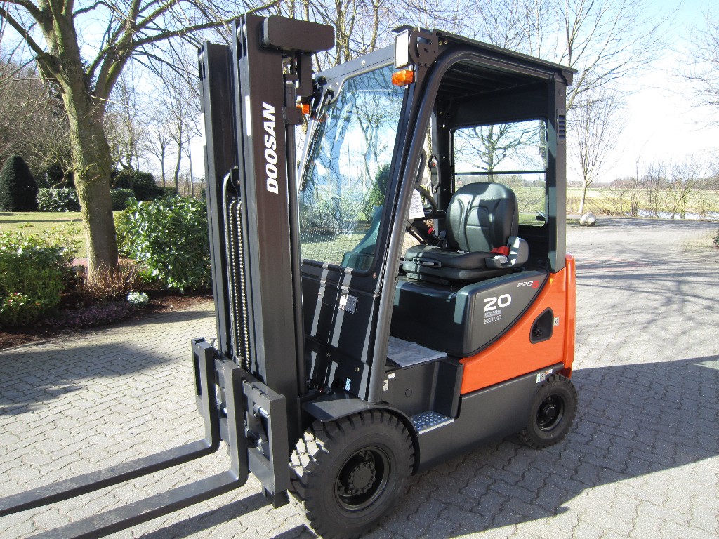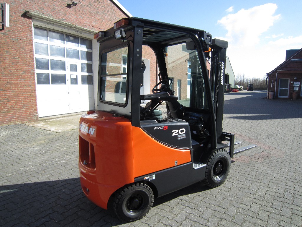 Dieselstapler DoosanD20SC5, mit einer Tragkraft von 2,0 Tonnen. SE- oder nicht-kreidende SE-Bereifung optional erhältlich.