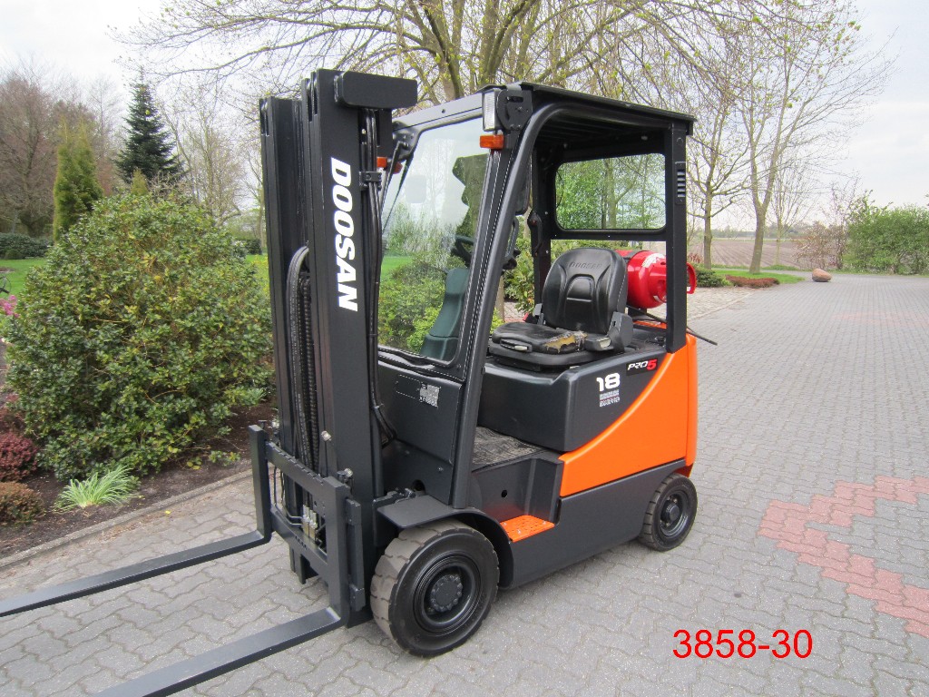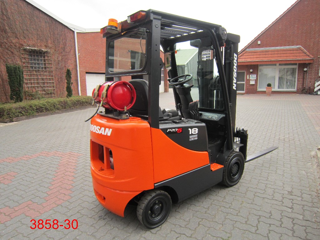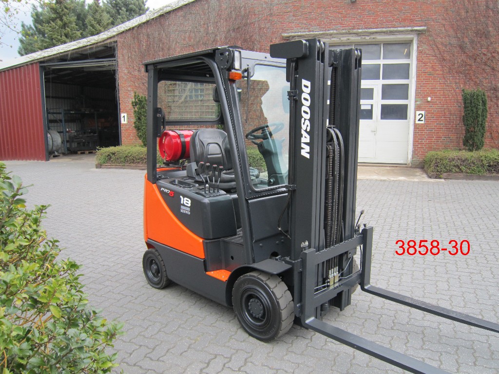 Treibgasstapler Doosan g18 mit einer Tragkraft von 1,8 Tonnen. SE- oder nicht-kreidende SE-Bereifung optional erhältlich.