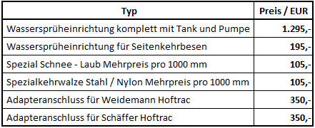 Zubehör Mehrpreis: