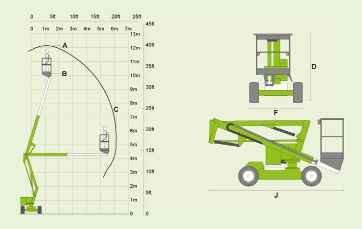 Sie wurde insbesondere gestaltet, um maximale Reichweite von der leichtest und kompaktest möglichen Basis zu bieten. Ein teleskopischer oberer Ausleger gibt der HR12N Ausleger-Arbeitsbühne verbesserte Genauigkeit beim Positionieren der Plattform und ausgezeichnete Manövrierfähigkeit macht sie zur idealen Maschine für viele verschiedene Anwendungen.