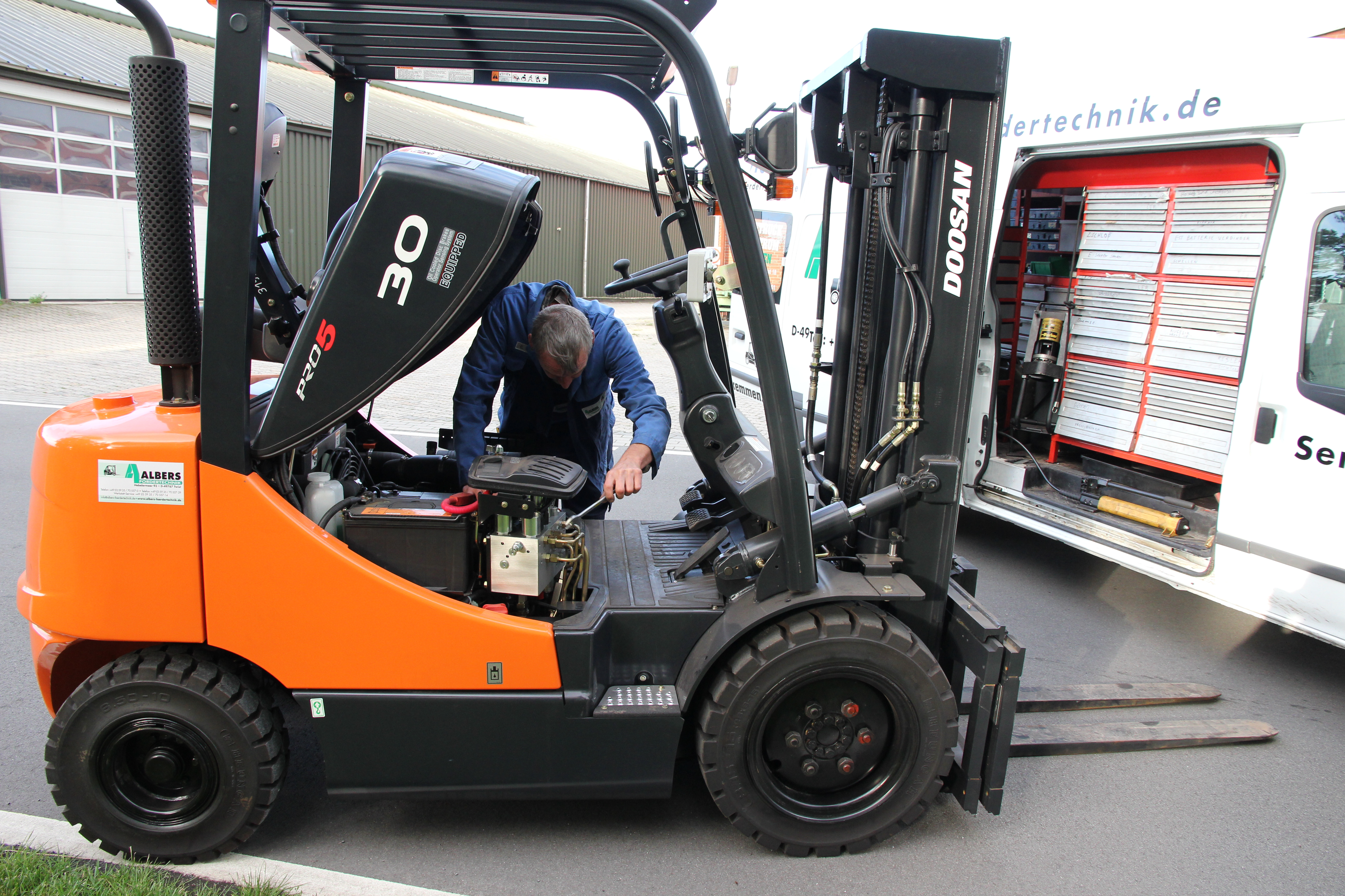 die mit einer mobilen Werkstatt, unseren Kundendienstwagen, direkt