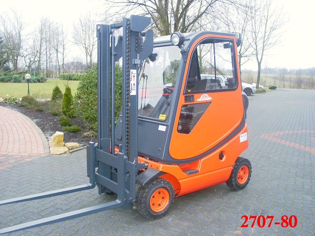 Linde H12D, 4- und 6-fach bereifte Dieselstapler mit einer Tragkraft von 1,2 Tonnen.