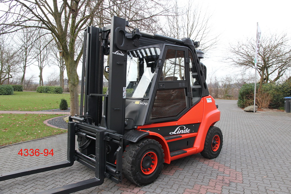Der Stapler mit original Linde hydrostatischem Antrieb und Linde ProtectorFrame (Rahmen und Fahrerschutzdach als kompakte Einheit) dadurch hohe Sicherheit und Stabilität. Mit einer Tragkraft von bis zu 7t sorgt der Linde H 70T für eine hohe Umschlagsleistung.