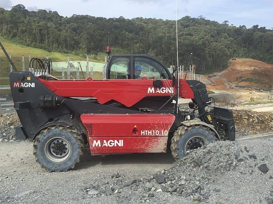 Der Magni HTH 10.10 ist ein starrer Schwerlast-Teleskoplader mit einer Hubkapazität von 10 t. Der Teleskopstapler kann mit einer Vielzahl von neuen Anbaugeräten, mit der Sie Schnell, Sicher und Einfach arbeiten, ausgestattet werden, die ihn vielseitig einsetzbar machen . Dank der automatischen Anbaugeräteerkennung R.F.ID kann der Teleskopstapler den vielfältigen Anforderungen der Schwerindustrie gerecht werden. Allradantrieb, drei Rangiermodi und eine große Bodenfreiheit verleihen ihn in jedem Gelände ein ausgezeichnetes Handling.