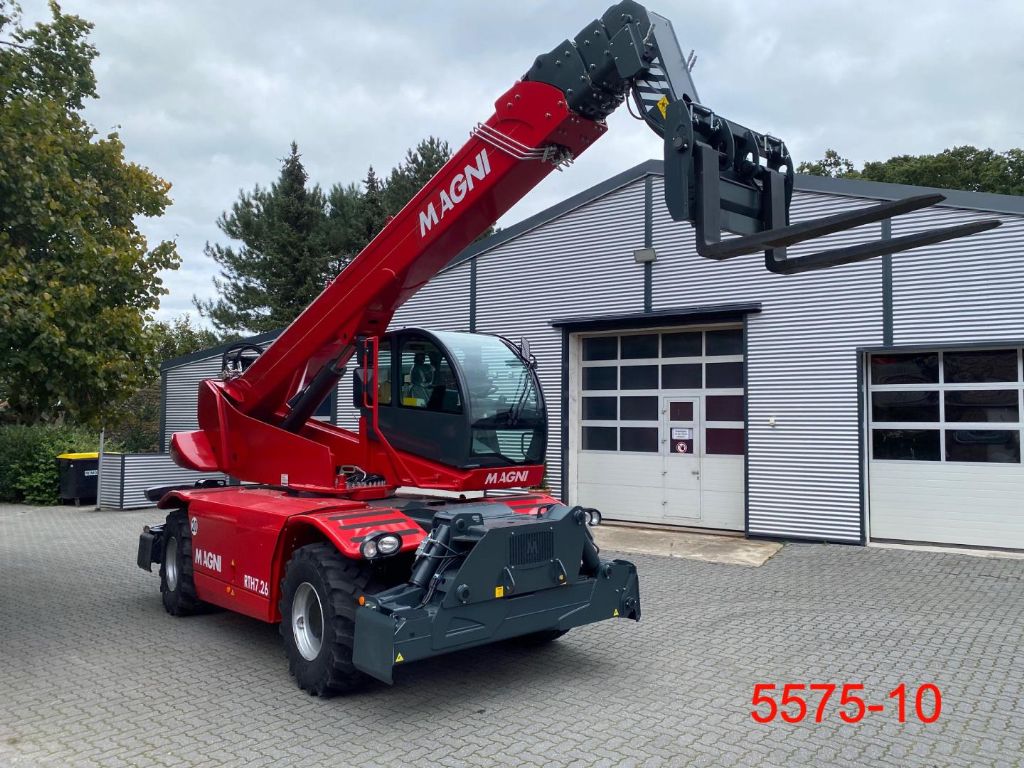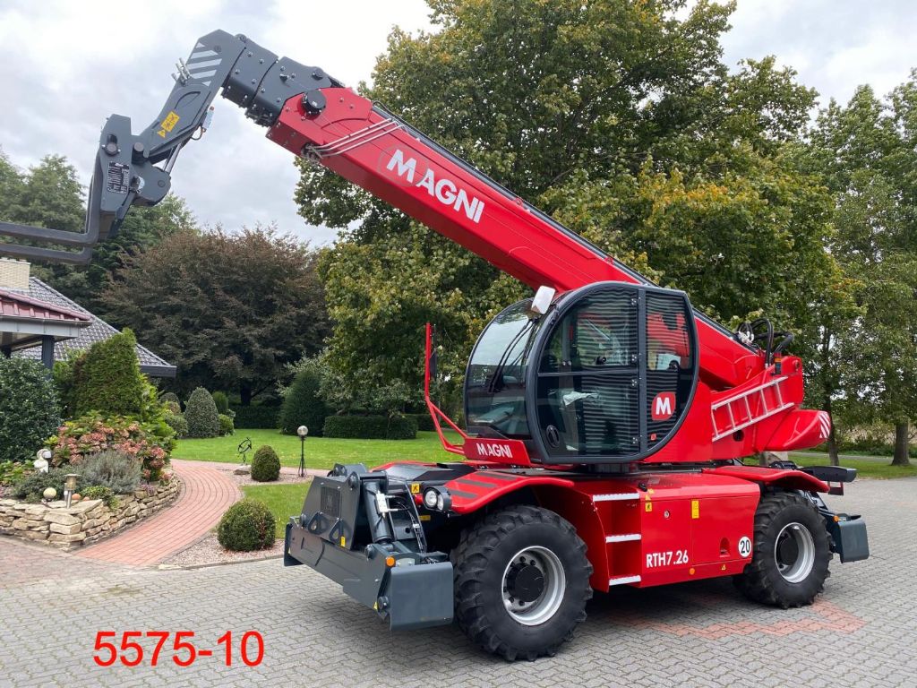 Der um 360° drehbare Teleskopstapler Magni RTH 7.26 kann bis auf eine Höhe von 26 m anheben. Der Teleskoplader ist mit Scherenstützen ausgerüstet, die für eine erhöhte Standsicherheit sorgen und damit hervorragend bei beengten Platzverhältnissen eingesetzt werden kann. Durch eine Vielzahl von erhältlichen Anbaugeräten kann der Magni RTH 7.26 zu den unterschiedlichsten Einsätzen genutzt werden, wobei die automatische Anbaugeräteerkennung R.F.ID die jeweiligen Lastdiagramme aktiviert.