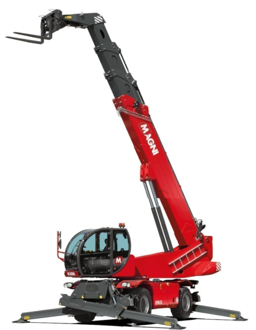 Der um 360° drehbare Teleskopstapler Magni RTH 8.25 kann bis auf eine Höhe von 25 m anheben. Der Teleskoplader ist mit Scherenstützen ausgerüstet, die für eine erhöhte Standsicherheit sorgen und damit hervorragend bei beengten Platzverhältnissen eingesetzt werden kann. Durch eine Vielzahl von erhältlichen Anbaugeräten kann der Magni RTH 8.25 zu den unterschiedlichsten Einsätzen genutzt werden, wobei die automatische Anbaugeräteerkennung R.F.ID die jeweiligen Lastdiagramme aktiviert.