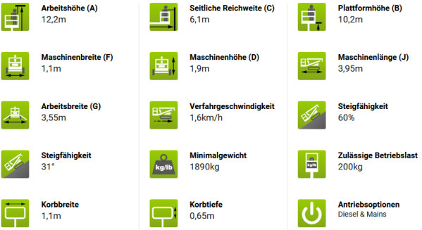 Das Befahren von Steigungen von bis zu 60% (31°) ist möglich.