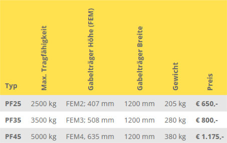 | Gabeln FEM3A 125x45x1200 für PF35 | € 650,- |