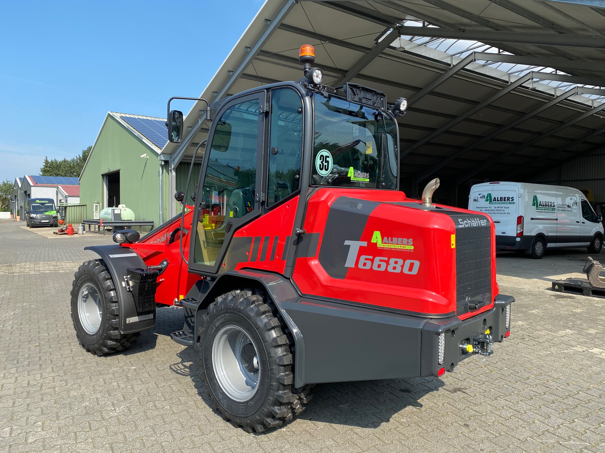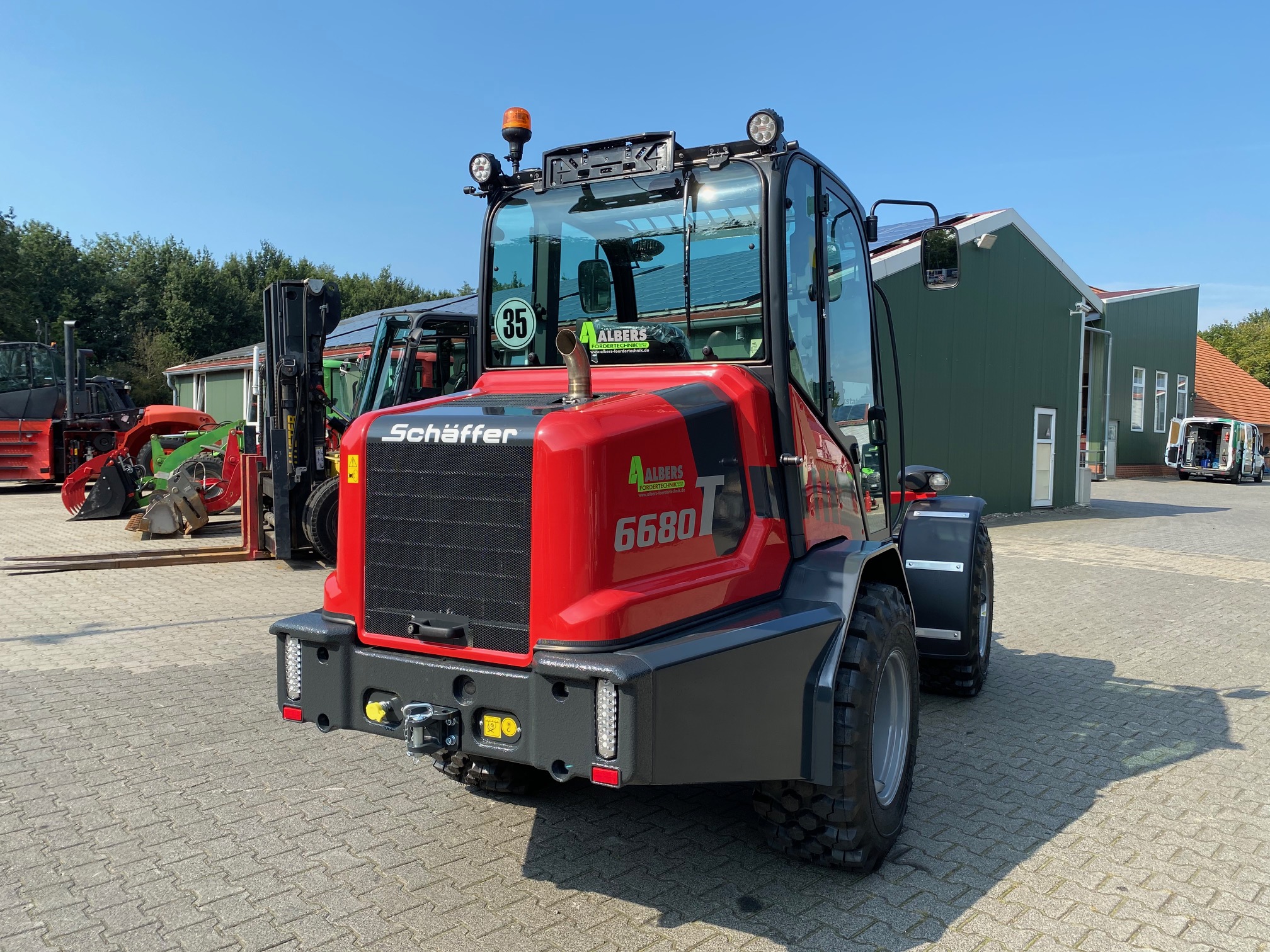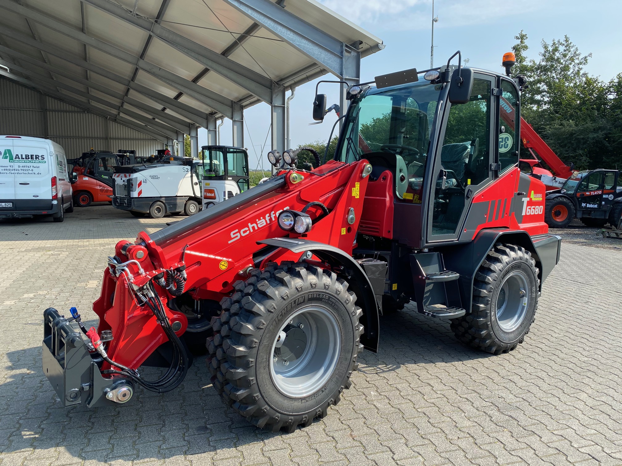 Der 6680 Z von Schäffer, kompakte Maschinenabmessungen bei größtmöglicher Kraft und Ergonomie. Die Fakten sprechen für sich: Massengüter schnell und sicher umschlagen und schwere Lasten transportieren. Der Radlader ist aufgrund seiner kompakten Abmessungen gerade bei engen Einsatzverhältnissen in seinem Element. Die Z-Kinematik packt kraftvoll zu, Hub- und Kipplasten sind absolut überzeugend. Für das große Plus an Standfestigkeit und Stabilität sorgt die pendelnd aufgehängte Hinterachse. Die Lader sind mit der „SCV“-Kabine ausgerüstet, die hin-sichtlich Platzangebot und Bedienungsfreundlichkeit kaum zu überbieten ist. Dank der perfekten Rundumsicht arbeitet der Fahrer schneller und sicherer.