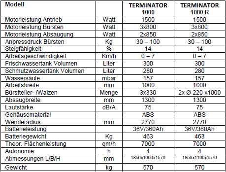 Mit den Terminator Modellen baut Fiorentini Industrie Reinigungsmaschinen für den professionellen Einsatz. Speziell in den Schwerindustriellen Bereichen und auf Bahnhöfen, Flughäfen, Betrieben und Einkaufscentern werden diese Maschinen eingesetzt.