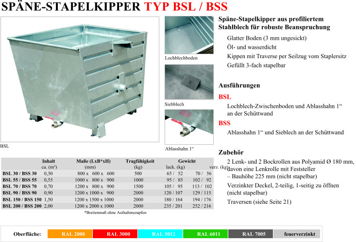 - Spänestapelkipper Typ BSL / BSS