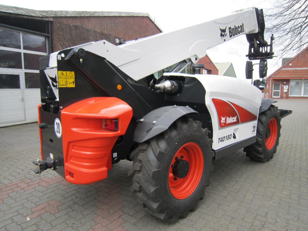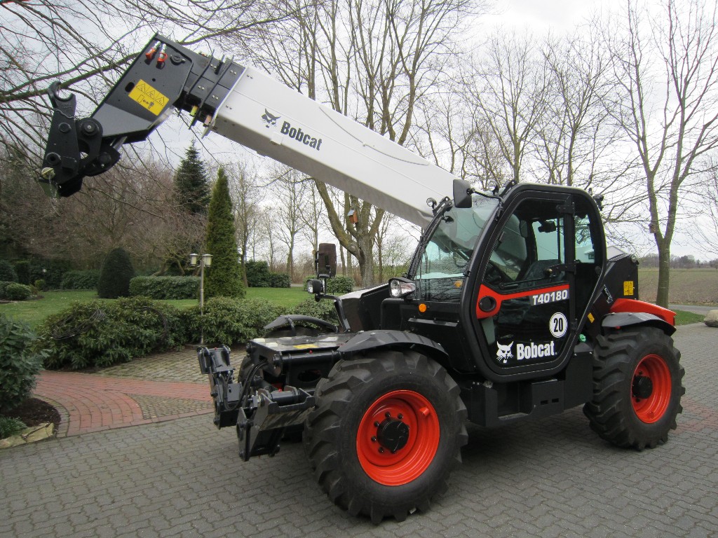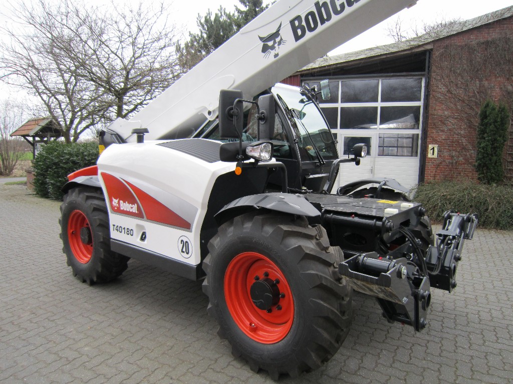 Teleskopstapler Bobcat T 40180 3B mit Hydrostatikmotor und Getriebe, mit einer Tragkraft von 4,0 t und einer Hubhöhe von 17500 mm.